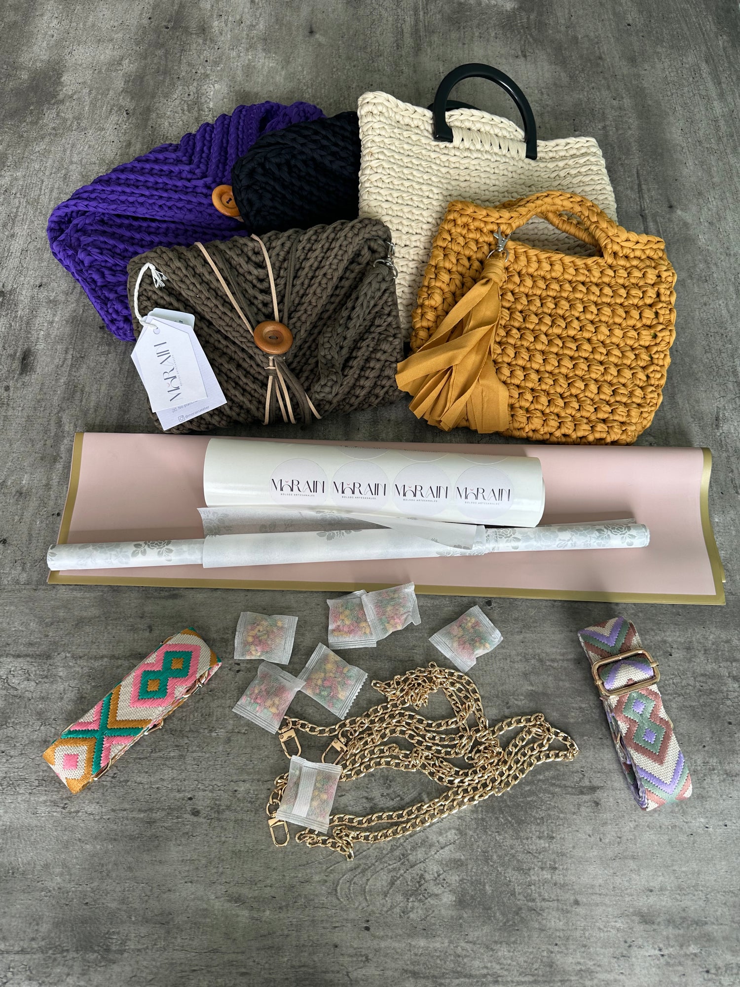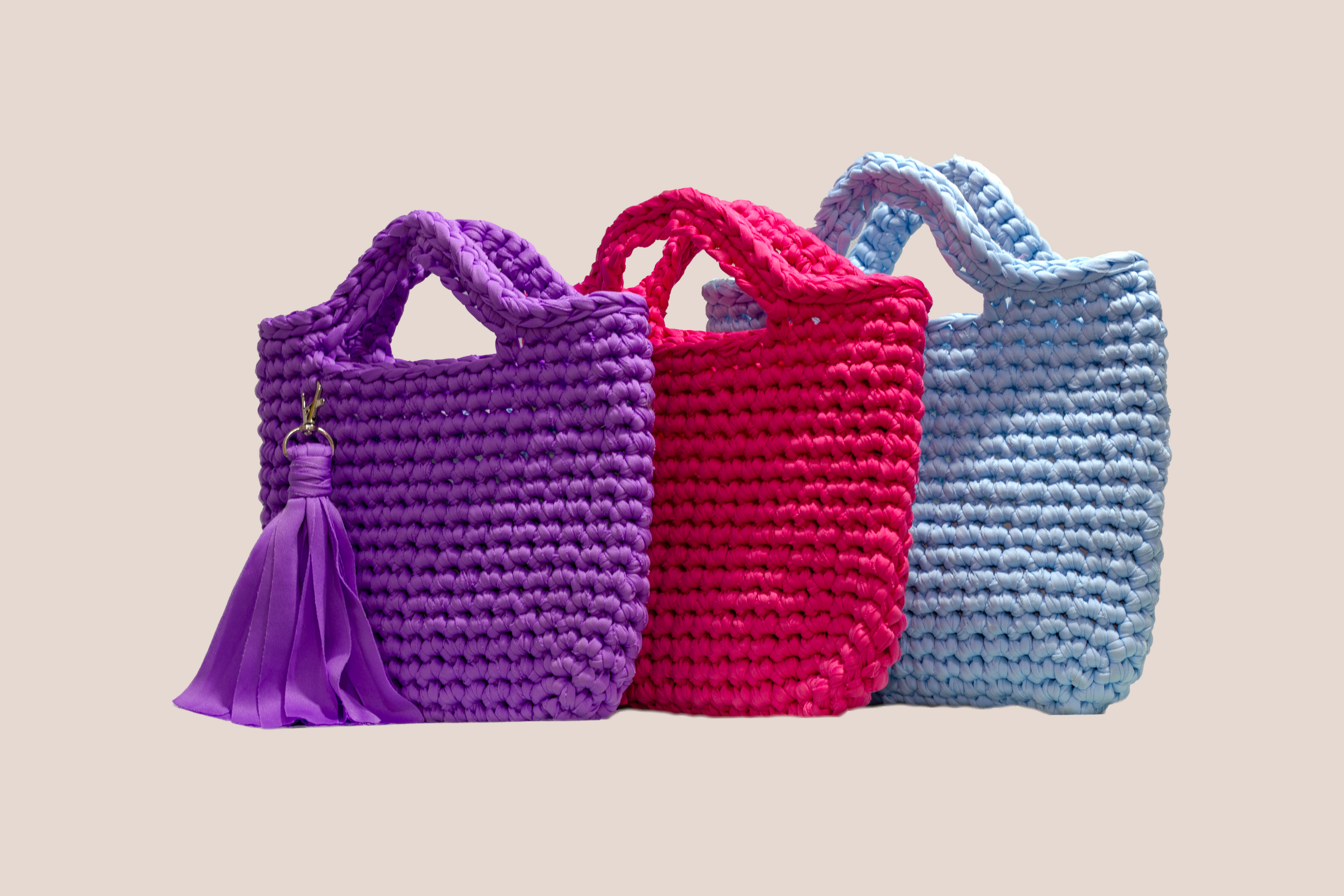 Esta colección de bolsos a crochet es una fusión de la energía vibrante del día y la elegancia misteriosa de la noche. Cada bolso de esta colección está tejido a mano con hilos de colores que representan las transiciones del amanecer al anochecer.